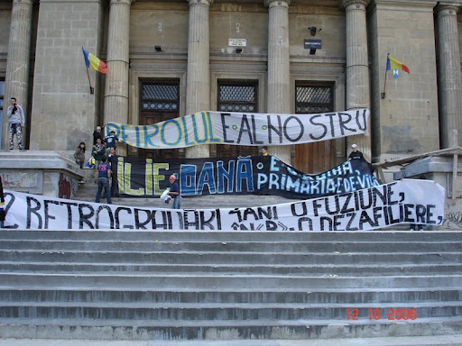 Ajungem în Ardeal. Prima oprire, Cluj-Napoca. Care e echipa fanion a oraşului Cluj? „C.F.R. , normal!” Nu, dragii moşului, Universitatea Cluj. Or fi cfr-iştii campioni şi deţinători ai Cupei, dar „U” este echipa reprezentativă a acestui oraş. Vice-campioni ai ţării în perioada interbelică şi câştigători ai Cupei în anii ’60, echipa studenţilor clujeni traversează şi ea o perioadă dificlă. Promovarea din 2007 părea să anunţe revirimentul „şepcilor roşii” (porecla echipei), însă, retrogradarea de la finalul sezonului trecut şi demolarea stadionului „Ion Moina” nu fac decât să accentueze criza în care se află echipa şi dezinteresul de care ea se „bucură” din partea oamenilor cu influenţă. Singurii care luptă pentru „U” sunt suporterii, aceiaşi suporteri care au fost alături de echipă şi în penitenţa de 10 ani prin diviziile inferioare.