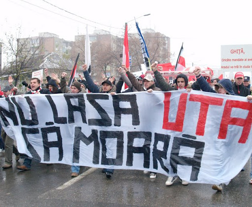 Coborând spre sud, ajungem în Arad. Ce-a fost şi ce-a ajuns „Bătrâna Doamnă” a fotbalului românesc. Din „Campioana Provinciei” (cele 6 titluri şi 2 Cupe stau mărturie în acest sens), astăzi, UTA luptă pentru a scăpa de falimentul iminent. Autorităţile locale manifestă un dezinteres total faţă de acest simbol, preferând în schimb să dărâme stadionul „Vagonul”, pe care s-a jucat primul meci de fotbal în România, şi să încerce o manevră tipică de „transferare” a palmaresului şi culorilor UT-ei în contul celor de la Gloria Arad. „Şi ce e rău în asta? Bine măcar că vor să facă ceva în al doişpelea ceas”, veţi spune mulţi dintre voi. Suporterii UT-ei v-ar spune doar atât: „UTA este ARAD!„.