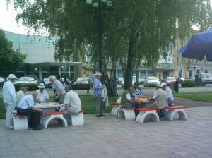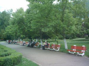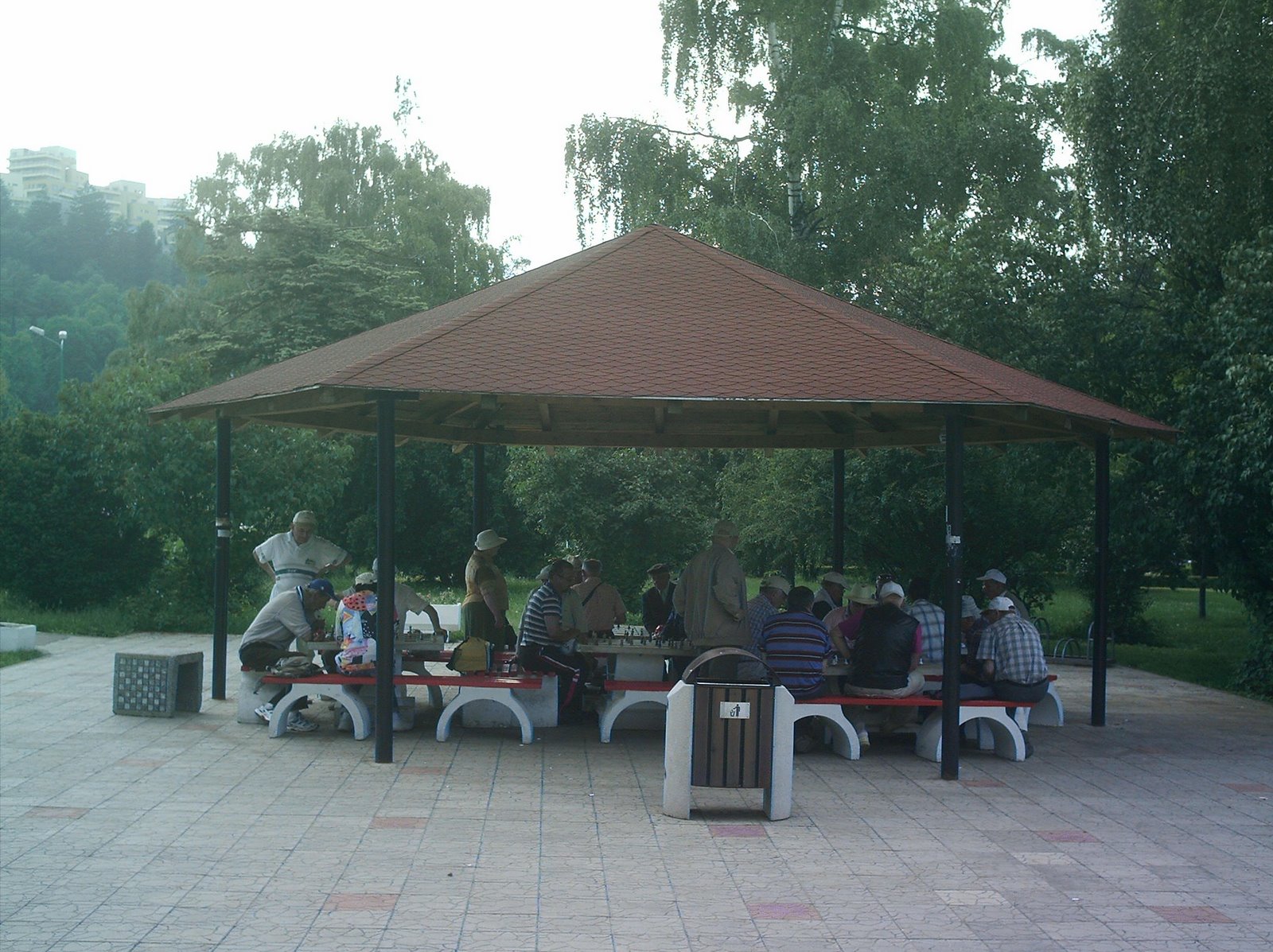 şi, la ieşirea din parc, la mesele de şah şi remi, era plin de bătrâni, majoritatea bărbaţi. I-am remarcat printre aceştia chiar şi pe fostul meu profesor de sport din liceu, deosebit de concentrat pentru a da lovitura de graţie în aprigul joc de remi, motiv pentru care nu l-am deranjat.