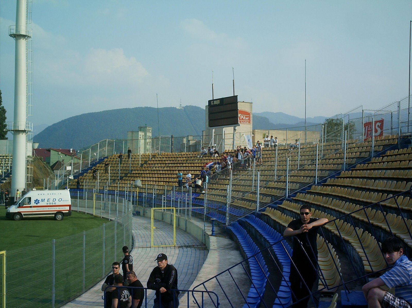 Ajuns la facultate, politeţurile şi glumele de rigoare cu colegii. La seminar toată lumea e bine dispusă, dar eu plec după vreo jumătate de oră pentru a mă întâlni cu respectiva fată în Livadă şi de acolo să luăm calea stadionului. Sprintez de la Corpul T până în Livadă, pentru că întârziasem să ajung la ora stabilită. Trebuia să ajung la 5 şi 20, eu am ajuns pe la vreo 5 şi 37. Ajung în Livadă şi examinez atent fiecare siluetă feminină pentru a o găsi pe fata cu pricina. N-o găsesc. Mă gândesc dacă nu cumva colega mea nu a uitat să-i transmită locul şi ora întâlnirii. Sunt un pic bulversat. Cu toate astea îmi cumpăr un bilet şi mă duc în staţie să iau „cinciu”. Mă tot gândesc la fata aceea. Mă macina gândul dacă ea a venit în Livadă şi eu n-am văzut-o. Mă încurajez spunându-mi că n-aveam cum să nu o remarc. Mă încearcă un sentiment de jenă. Trec peste moment pentru că autobuzul a ajuns în Bartolomeu. Cobor şi la pas grăbit pornesc spre stadion. E 5, 47 şi-mi imaginez coada de la bilete, coada de la intrare. Mi-am uitat abonamentul acasă şi voi fi nevoit să-mi iau bilet. Îmi dau repede seama că meciul cu Oţelul e lipsit pentru noi de orice fel de miză aşă că mai încetinesc puţin pasul. În timp ce stăteam la coadă, văd un amic din galerie alergând pe lângă stadion. N-am timp să-l opresc pentru că tipul e hotărât să doboare vreun record mondial. Totuşi, mă întreb de cine şi de ce aleargă? Intru lejer pe stadion când mai sunt vreo 5 minute până la începutul meciului. Dar n-apuc să mă fac comod pentru că în peluză dau de alte năstruşnicii. Firma de pază face gura mare la suporteri, sau invers, depinde cum preferaţi. N-am prins scânteia scandalului dar în mod cert este ceva legat de steaguri şi benăre. La ultimele partide de acasă am avut mari probleme cu forţele de (dez)ordine pe această temă. În timp ce un membru al firmei de pază, un fel de şef al lor pe stadion, cu ceafă lată, burtă proeminentă şi etnie îndoielnică, se certa cu un amic de-al meu, nu ezită să-l ameninţe pe acesta cu bătaie în afara stadionului. Orice norme erau doborâte. Urcând treptele peluzei, i-am spus unui membru al firmei că „mie mi se rupe de voi”, moment în care pantalonii mei trei-sferturi cu camuflaj de iarnă s-au divizat între picioare dând naştere unei veritabile falii.