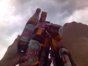 Doamne, cât m-am mai chinuit să sprijin telefonul de o piatră pentru ca obiectivul să ne cuprindă în toată splendoarea demenţei noastre. De fapt, stai aşa! Nu l-am sprijinit de o piatră , ci de bidonul cu Ciucaş! Eu, Nicu, Ovi şi Uţe… tot copiii vom rămâne indiferent de câţi ani or să treacă peste noi.