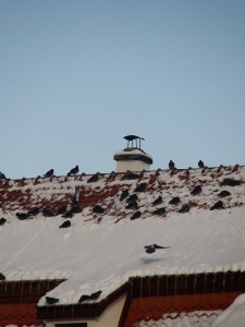 Ăsta micu’ de la sfârşit încerca să se fofileze atribuţiilor porumbiceşti undeva printr-o ferestruică a Bisericii Negre în timp ce, spre exemplu, camarazii lui făceau de veghe la turla Bisericii Adormirii Maicii Domnului din Piaţa Sfatului. Sau poate că el e în concediu fără plată.