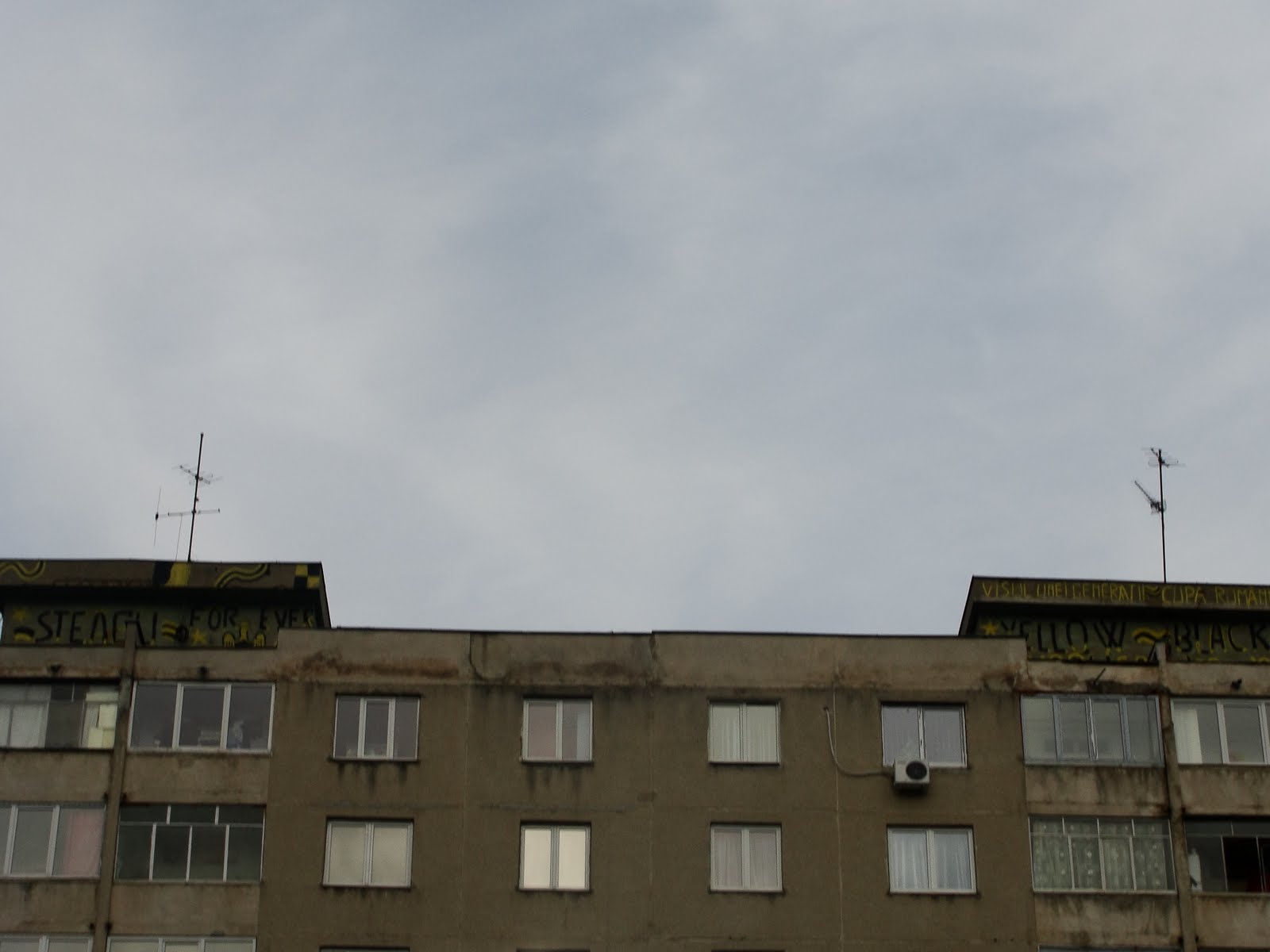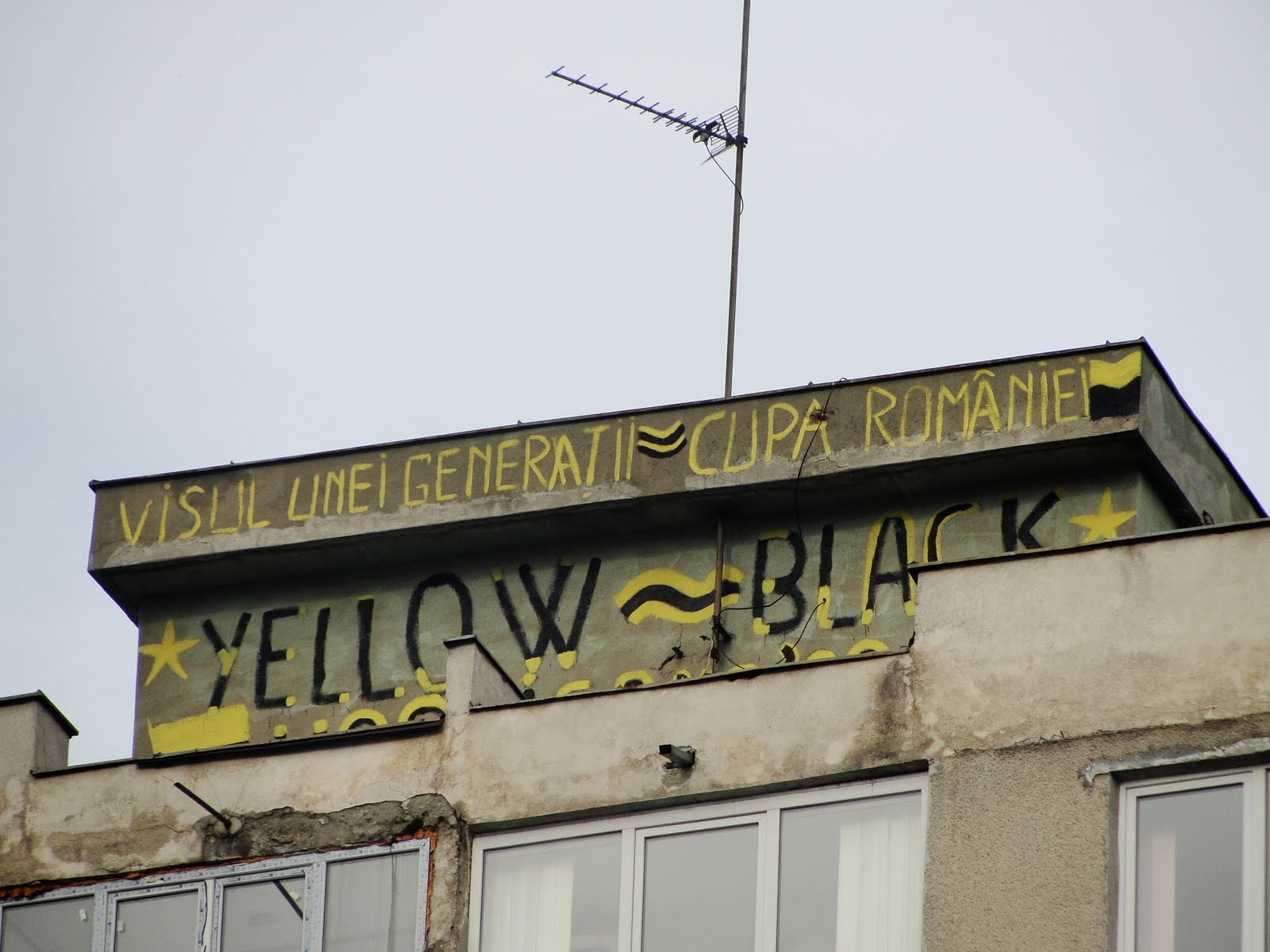Undeva-n cartierul Steagul, pe-un bloc de vreo 10 etaje, stau întipărite două declaraţii: una de dragoste şi alta de vise. Le leagă culorile: galben şi negru.