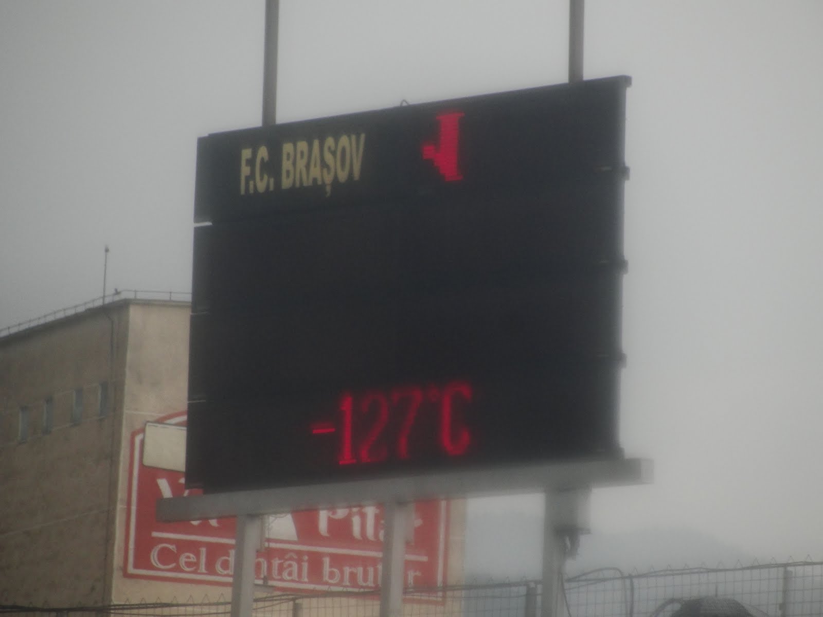 La pauza meciului cu „U” Cluj, temperatura aerului a cunoscut o scădere bruscă. Astfel că, în seara zilei de 1 august 2010, sub Tâmpa a fost stabilit un nou record de minimă termică. Precedentul record de -89,4 grade Celsius înregistrat la Vostok în 1983 a fost efectiv bătut la fundul gol. În jurul orelor 19 şi 55 de minute, tabela stadionului „Silviu Ploeşteanu” arăta -127 de grade Celsius. Ce e scris, în cazul de faţă afişat, apăi afişat rămâne.