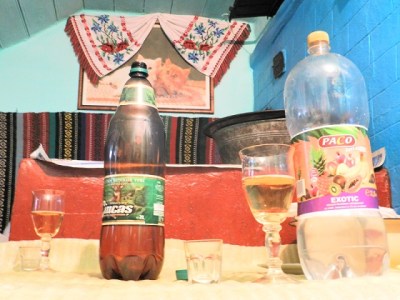 Buuun, băieţi, acum să trecem la lucruri serioase în timp ce fetele încă se „aaaaa, ce drăăăguuuuţi” la pozele cu pisoii. Şi când zic treburi serioase mă refer la „whisky-ul” plaiurilor moldo-bucovinene: rachiul ! Dom’le, cât rachiu am băut de vineri şi până azi, n-am băut în toată viaţa mea. „Hai că masa-i gata… poftim un păhărel cu rachiu !”… „Aţi mâncat, să vă fie de bine… poftim un păhărel cu rachiu !”… „Te-ai trezit, bună dimineaţa, poftim un păhărel cu rachiu !”. Desigur, „un păhărel” e un fel de-a spune. Da’ nu mă plâng ! Tulai Doamne cât îi de bun şi, curios lucru, nu mă-mbăt. Secretu’ e să nu bei păhărelu’ din mai mult de trei gâturi. De la patru gâturi în sus te-ai putea crede mai uşor de cât eşti de fapt, lucru de nedorit când wc-ul are o podea şubredă.