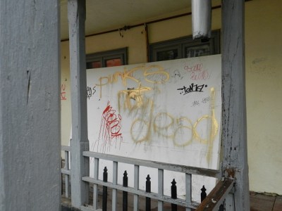 „Punks not dead” (Puşlamalele n-or murit, pentru cei nefamiliarizaţi cu engleza) pe Faleza din Fălticeni.