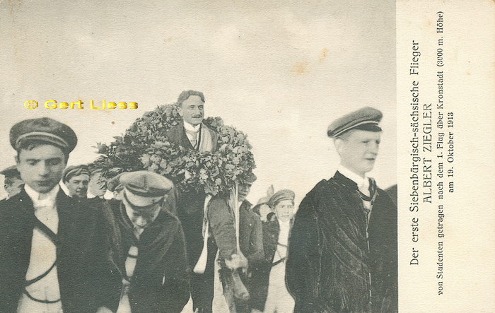 La numai un an de la isprava lui Vlaicu, pe 19 octombrie 1913, un sas, Albert Zielgler, decolează cu avionul său numit „Pfeilflugzeug” (Avionul-săgeată) şi survolează Măgura Codlei la altitudinea de 3000 de metri, stabilind un nou record de altitudine. După aterizare este din nou ridicat la cer, de această dată de mulţimea entuziastă.