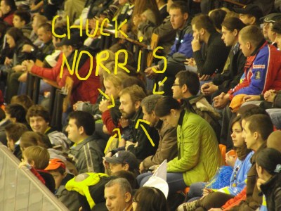 Plm, mai multe n-am, că Chuck Norris nu face duble. Şi zici că v-aţi văzut la Hockey Pub? Intăresting…