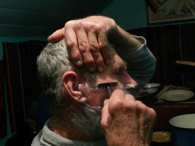Chestia asta se întâmpla cândva prin 1958. În octombrie 2011, Pachiţa termină de întins spuma pe obraji, bărbie, mustaţă şi gât şi scoate dintr-o cutiuţă aparatul de ras vechi de 53 de ani.